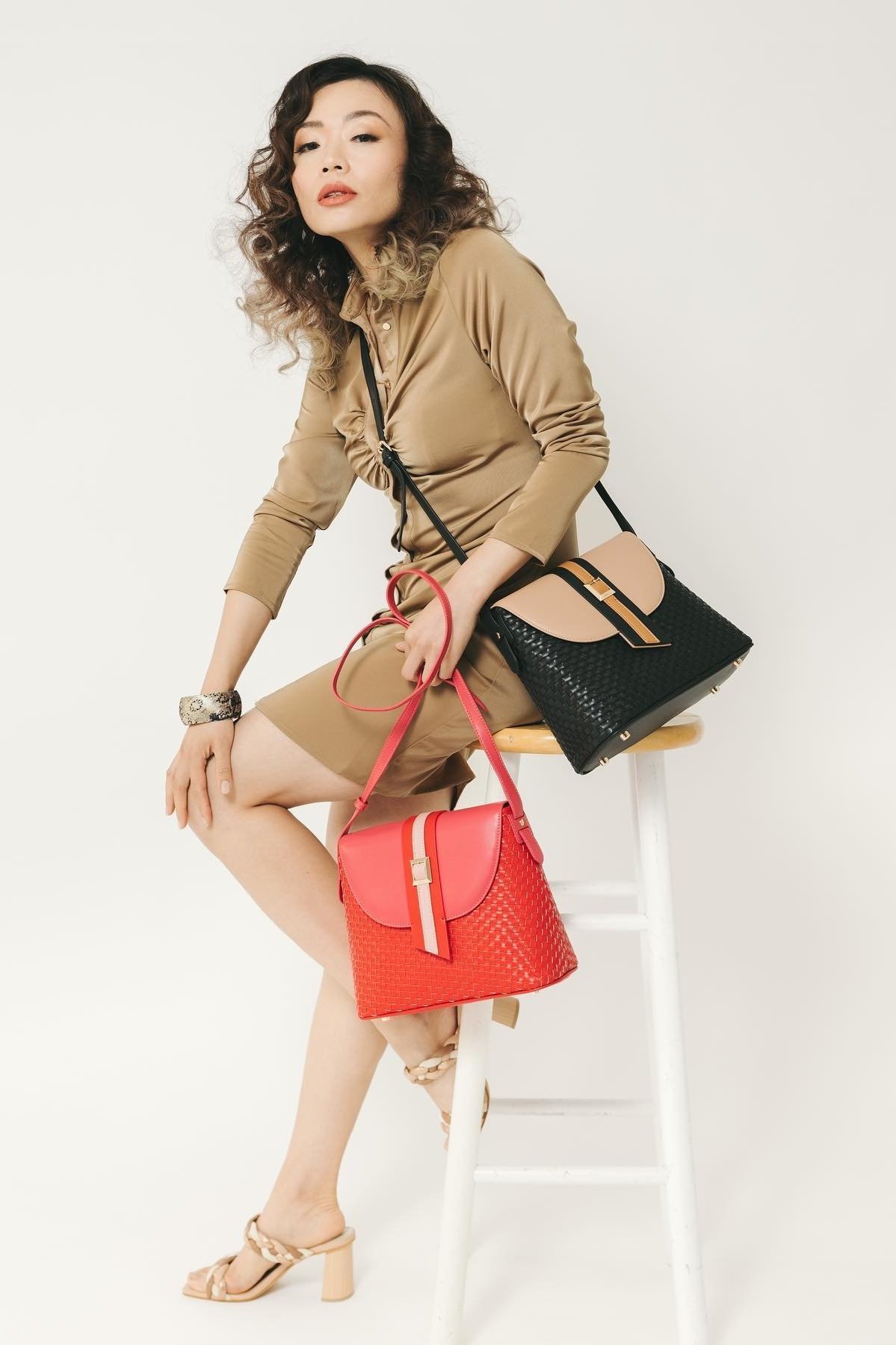 Their handbags are designed with Art Deco and Cycladic architecture serving as inspiration, with incredible use of different materials and asymmetric silhouettes.