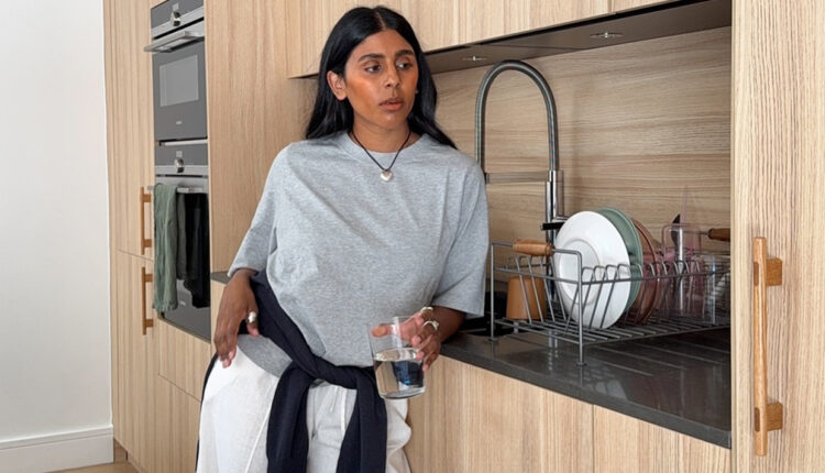 Danielle Jinadu wearing a waffle-knit set including a pullover sweater and drawstring pants.