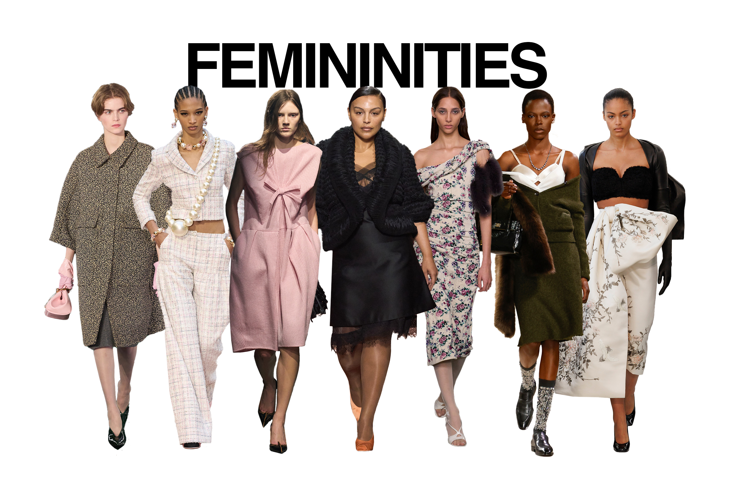Conversations throughout fashion month centered on ideas about femininity in fashion. This came up both in terms of the clothes on the runways as well as the collections we saw from female creative directors. “What does femininity mean today?” read the show notes at Prada as Miuccia Prada and Raf Simons set out to examine the archetypes of female dressing and poke holes in the notion of feminine perfection. The concept was explored at Miu Miu as well with a show titled Femininities that was “an evaluation of the feminine” as expressed through clothing—a theme that carried across the collections this season. Prada and stylist Lotta Volkova explored different notions of femininity throughout the show, including emblems such as brooches, stoles, and bullet bras. For her debut collection at Givenchy, Burton paid homage to the atelier’s origins through a distinctly female point of view, reinterpreting iconic silhouettes from the archives such as hourglass shapes and evening gowns. At Schiaparelli, too, the collection was centered on women, and Daniel Roseberry reimagined Old Hollywood glamour through a female lens.