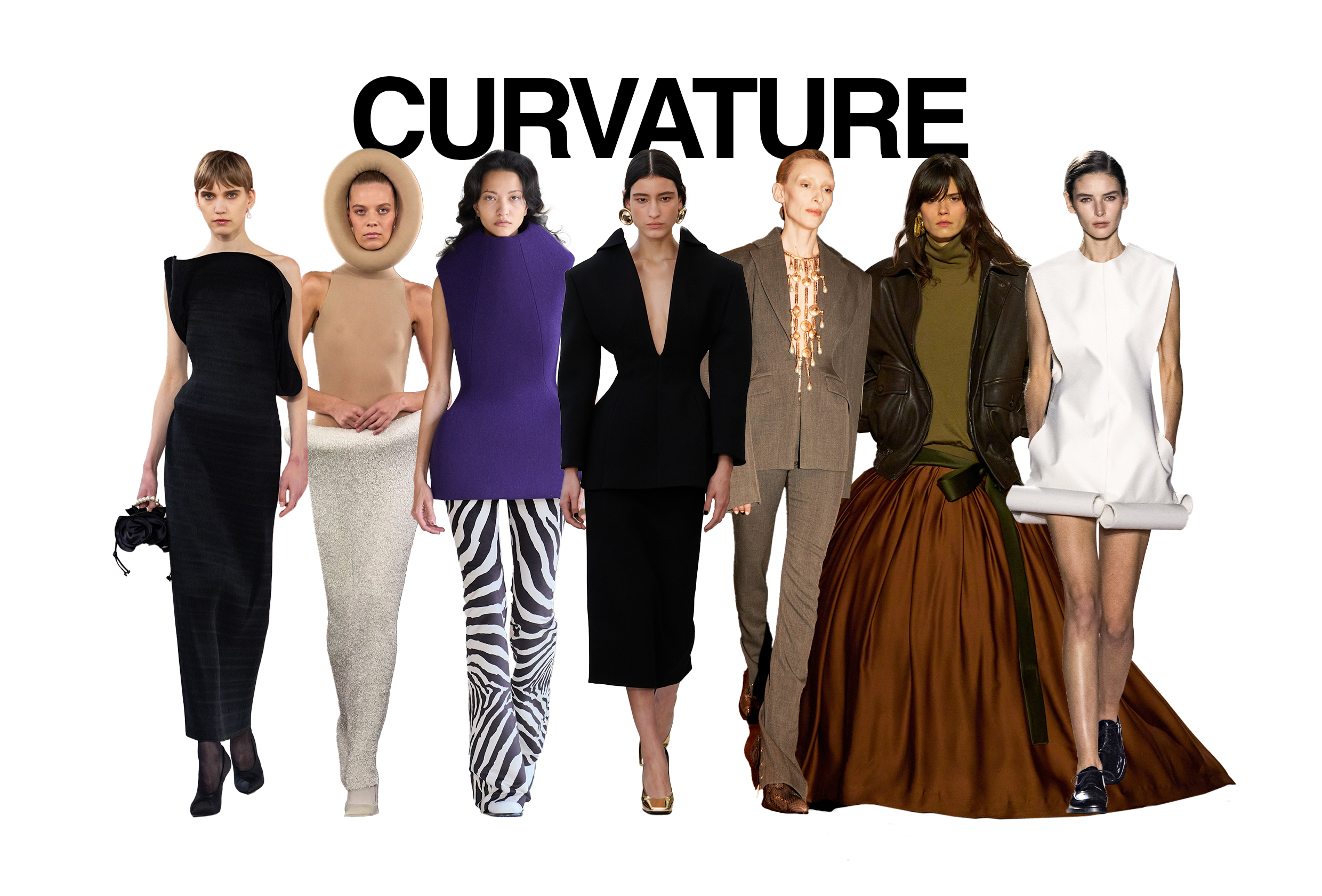 After studying thousands of looks from the fall/winter 2025 season, one concept made its existence abundantly clear. Silhouettes were far from consistent, with everything from hourglass and peplum waists to barrel denim appearing on the runways, but curved lines and voluminous shapes remained ubiquitous. At Givenchy, Schiaparelli, and Duran Lantink (one of the season’s most talked-about labels), hypersculpted midsections brought all eyes to the waist. Anthony Vaccarello’s Saint Laurent show closed with a handful of drop-waist gowns with roomy and rounded ball skirts. Meanwhile, Victoria Beckham took an even more novel approach, rolling up pressed hems and collars into perfect cylinders and turning her garments into dramatic works of art. Straight and sharp designs clearly weren’t top of mind as fashion’s brightest minds gave curvature a try for fall 2025.