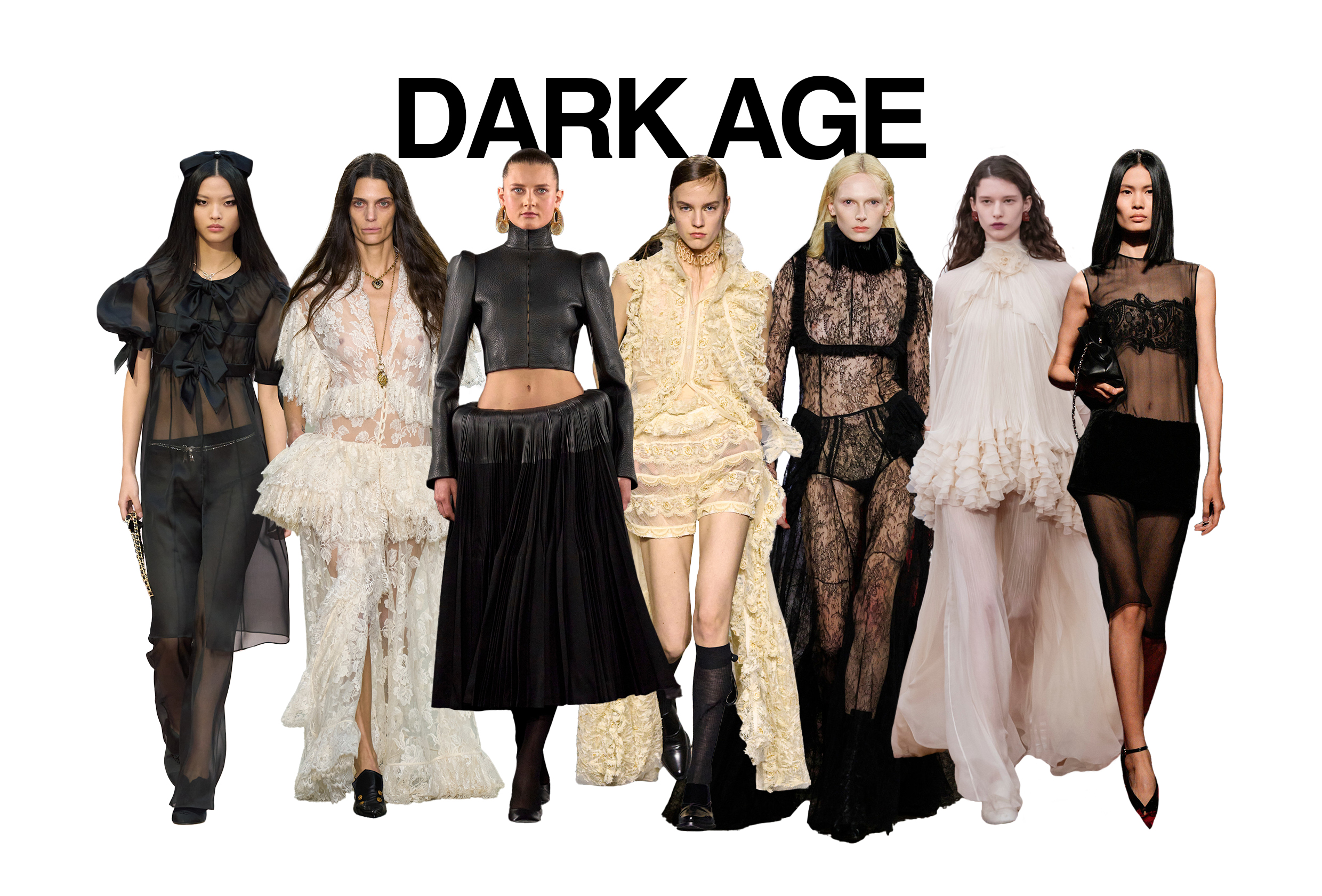 If the spring/summer 2025 runway collections hinged on soft, ethereal fabrics and romantic moments, consider fall/winter 2025 the opposite. Unlike the romance that reigned for spring in a season filled to the brim with flowing, sheer gowns in pastel shades and pretty touches made to make wearers swoon, fall’s offerings were darker—almost gothic. In Paris, brands like Alaïa, Dior, and McQueen dipped into a moodier pool of inspiration, leaning on black lace and sheer chiffon; Victorian ruffs; and tight, tough leather. Milan’s Ferragamo and Alberta Ferretti, though noticeably less intense, gave off the same beautifully melancholy air. Of course, fashion, like all industries, follows society’s course. Look around—we’re living in the dark ages, and come fall, our wardrobes will accurately match the vibe.