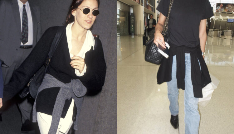 The fascination surrounding celebrity in-transit style might have ramped up in recent years, with airport dressing now considered an important part of a blockbuster press tour. However, some of the coolest celebrity in-flight looks actually come from the ’90s, when supermodels Naomi Campbell, Cindy Crawford, and Linda Evangelista traveled the world in the same minimalist uniform. The aesthetic is very early ’90s Calvin Klein, as it involves a comfortable T-shirt, a pair of straight-leg jeans, and a sweater nonchalantly looped around the waist. The vibe is completed with a passport and boarding pass in hand, an oversize weekend bag, and a coffee to-go. It’s very Concorde chic.