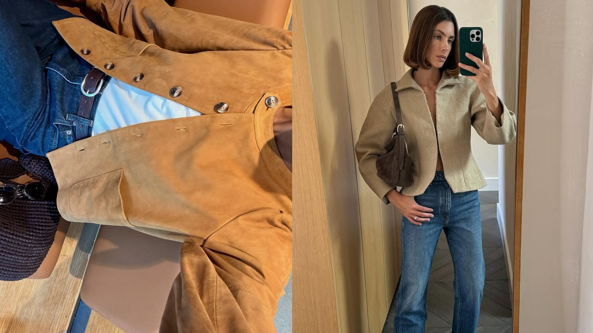 This pairing is also winning for its versatility. A structured tan blazer worn with dark-wash jeans reads classic and refined, while an oversize suede jacket over wide-leg denim feels more laid-back and cool. Fashion insiders are leaning into both ends of the spectrum, proving just how adaptable the duo is. It’s the type of combination you can wear to a casual coffee run or a dinner reservation without needing to rethink your outfit.
