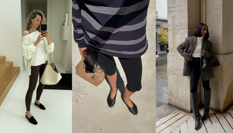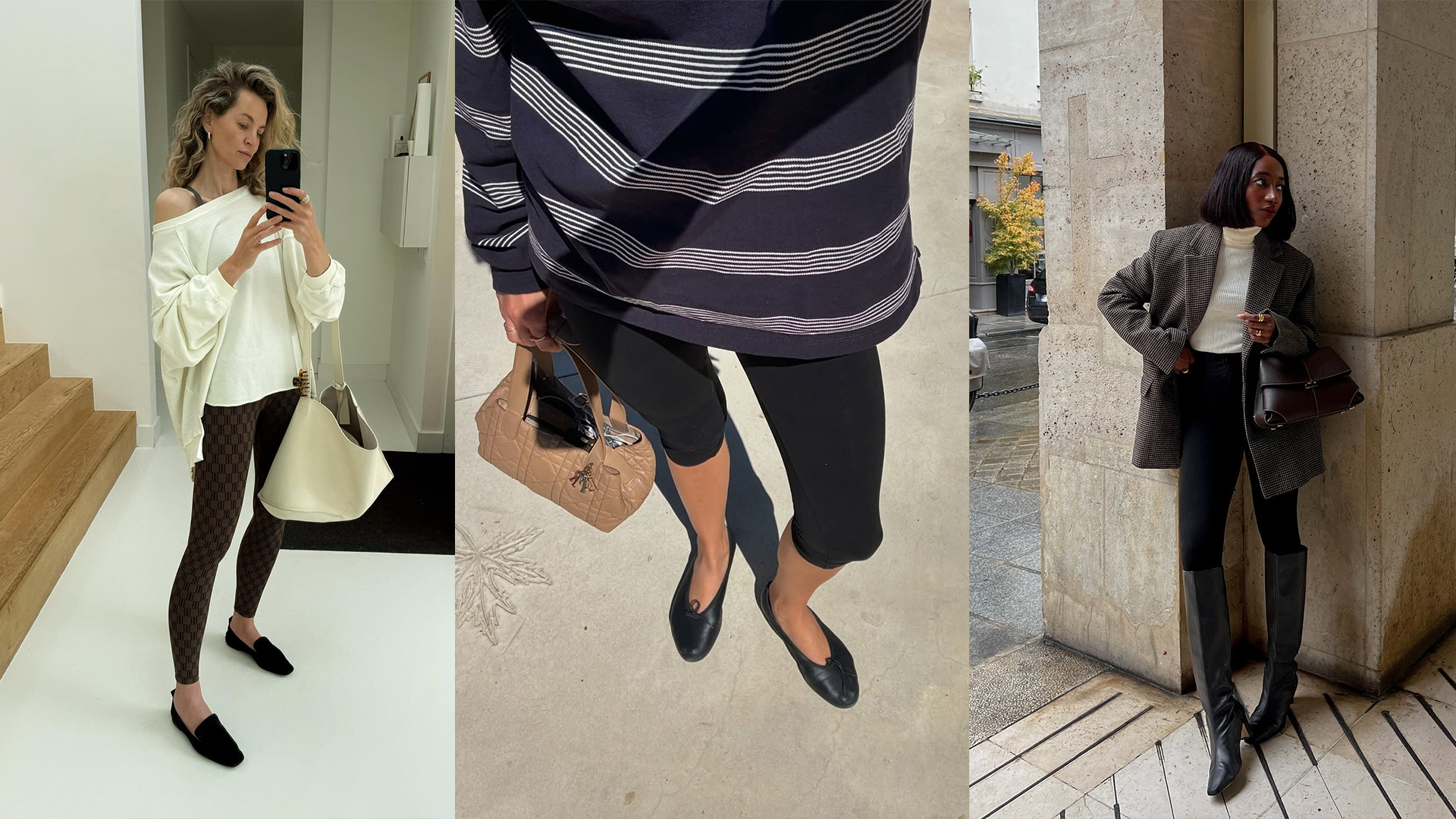 The key to making a loungewear-adjacent outfit look street-worthy is all in the shoes. A pair of trendy flats have transformative powers when it comes to a legging outfit.