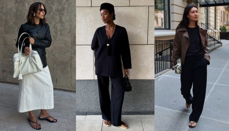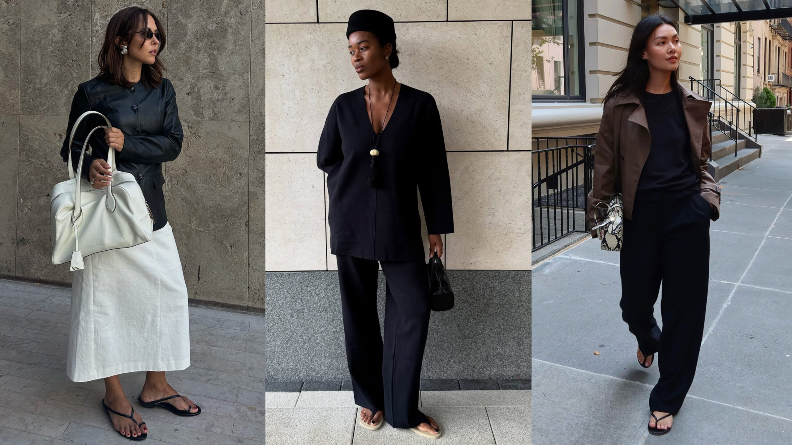 Indulge us for a moment: Picture an idyllic fall day. What comes to mind? Beyond envisioning the more “typical” imagery that’s associated with this time of year, there’s an often overlooked element that visually embodies our transition into a new season: footwear. Frankly, we can’t think of any other items that have become as visually synonymous with the start of autumn as boots, loafers, and the occasional sneaker. Flip-flops, though? Hardly a fall staple, or so we thought. While many of us have already mentally relegated sandals to a relic of the near past, there’s a rising set of style renegades who have chosen to find ways to continue to wear them (despite summer being long dead). Whether intentional or not, the style crowd’s slow embrace of these summer shoes has stirred the pot online, leaving many wondering, “Um, so is this really a new trend?” And, if so, how do you wear flip-flops in the fall?