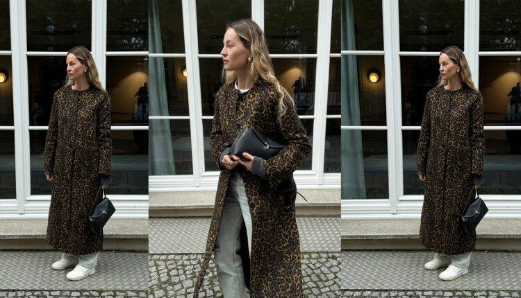 Leopard Coat + Jeans + Sneakers