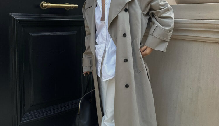 Into this gray trench coat.
